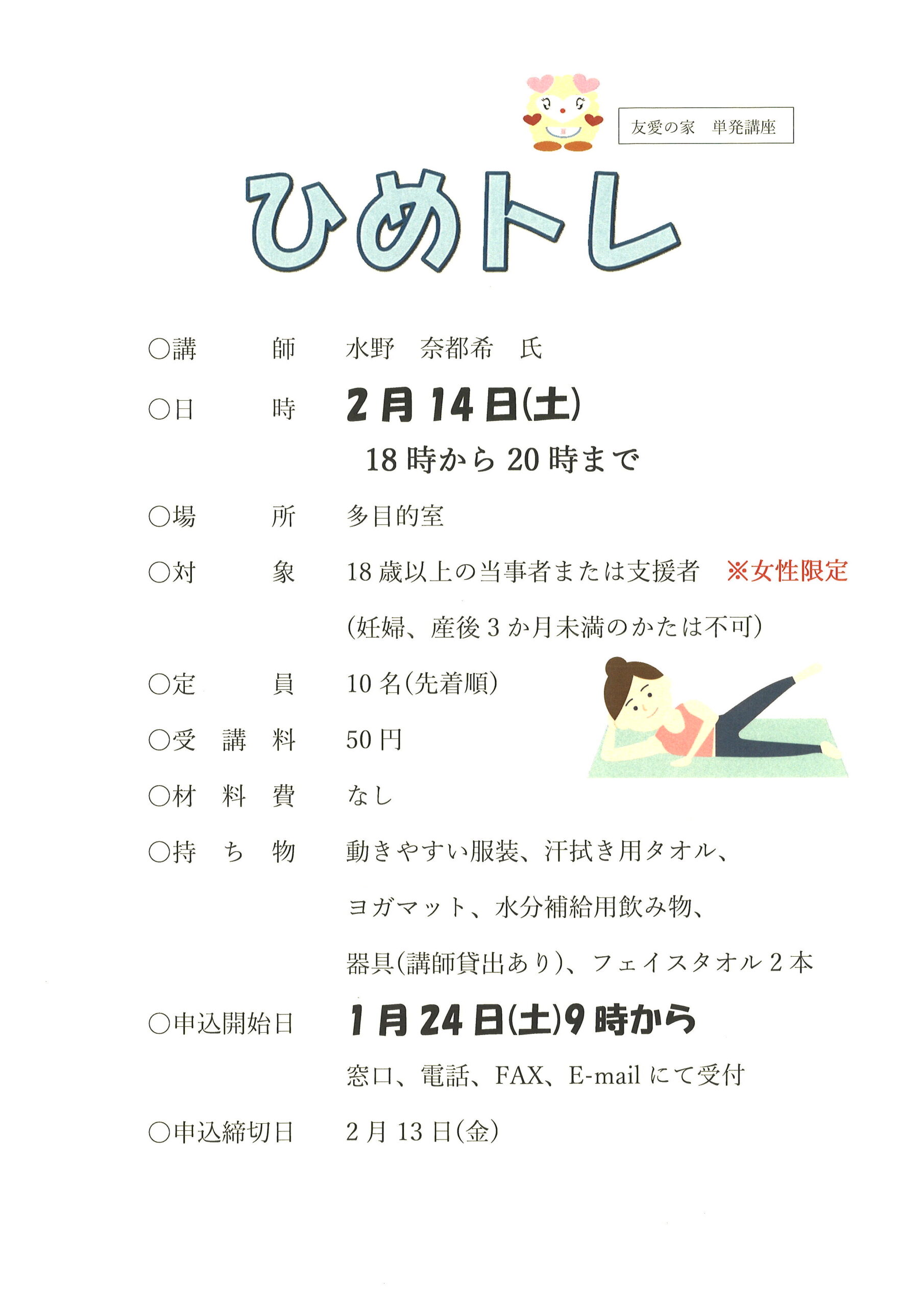 人気の「ひめトレ」講座、今回は土曜日の夜に開催します。